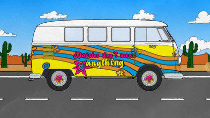 This project originally began as a looping visualiser concept but evolved into a full lyric video. I began by creating a video treatment deck, pitching the idea of a stereotypical hippie camper van with colourful patterns and De La Soul's iconic illustrations animating on its surface.